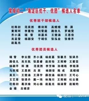 十一学校13级常规初二“海淀区优干、优团”候选人名单