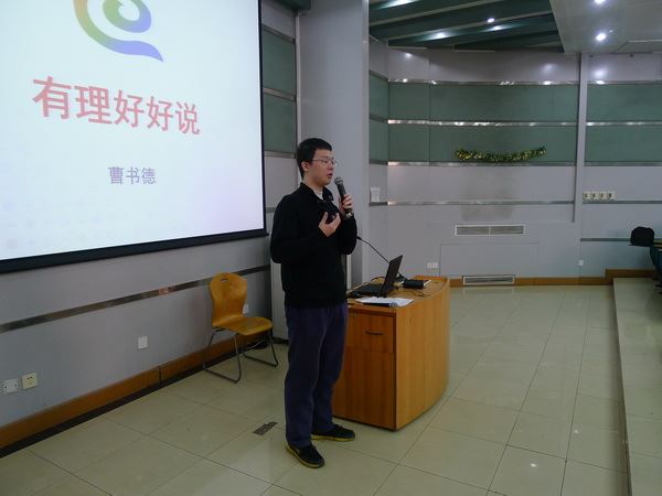 2015年3月12日下午在科技楼二层报告厅,十一学校高二学部的曹书德老师为大家带来了讲座“打开说理的思路”,对同学们进行议论文写作时可能出现的问题进行了深入剖析和解答,并加以恰当的指导,为我们带来了一场丰富的精神盛宴。
