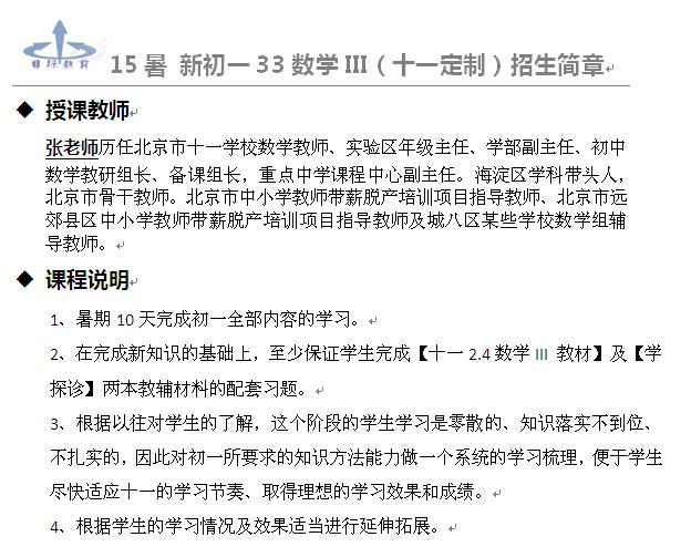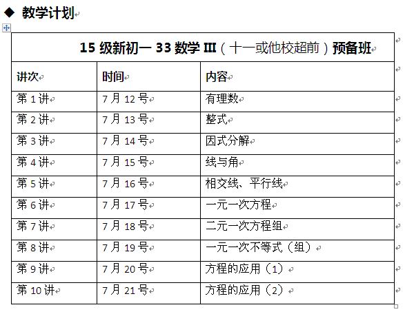 新初一24数学III&IV 暑期课程计划