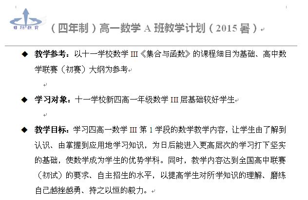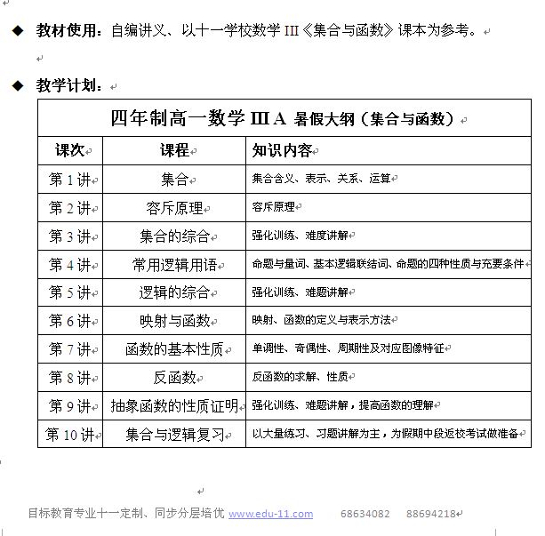 新四高一数学A 暑期课程计划