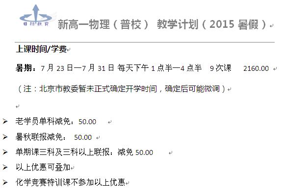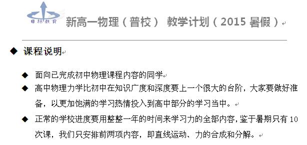 15暑新高一物理(普校)简章