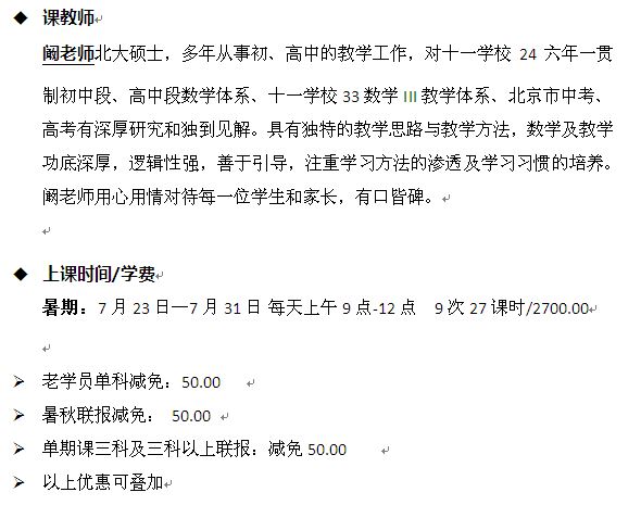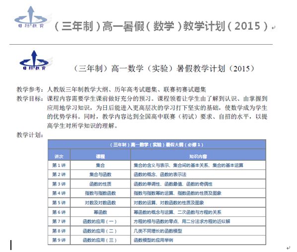 15暑新高一数学(实验班)简章