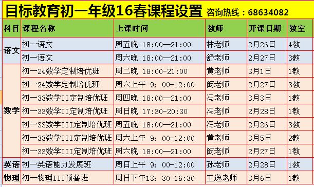 【十一分层定制系列】 初二24、初二33 16寒春课表